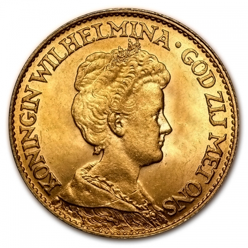 На аверсе изображен портрет королевы Нидерландов Вильгельмины I. По ободу помещена надпись: «KONINGIN WILHELMINA•GOD ZIJ MET ONS» (королева Вильгельмина, С нами Бог).