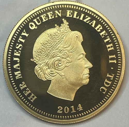 Золотая монета 2 фунта "Годовщина рождения принца Джорджа Уэльского" 2014г., Au 917, 16,171г.