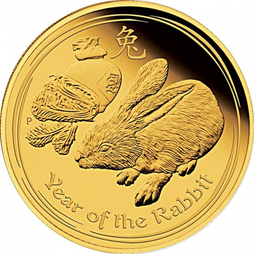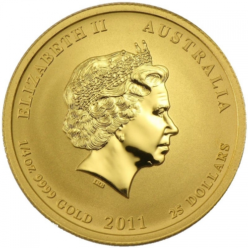 Золотая монета 25 долларов "Год Кролика" Лунный календарь, 2011 г., Австралия, Au 9999, 7,78 г.