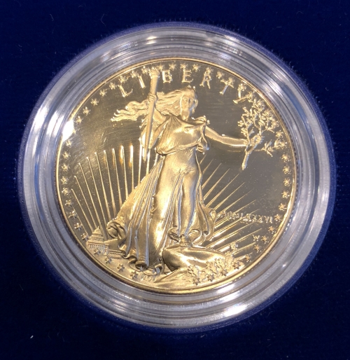 Впервые золотая монета Американский орел была отчеканена на монетном дворе США в 1986 году. В настоящее время Американский золотой орел выпускается в четырех номиналах – унция, 1/2, 1/4, 1/10. В соответствии с действующим в США законодательством (Закон о весовых монетах) монеты должны быть отчеканены из золота, добытого на территории Соединенных Штатов Америки. Монета Золотой орел имеет пробу 22 карата, что соответствует содержанию 91,67% чистого металла в монете, а легирующие примеси составляют: серебро – 3% и медь – 5,33%. Данная монета является одной из самых популярных инвестиционных монет в мире.