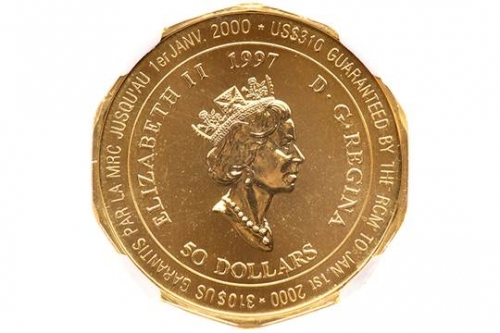 US310 GARANTIS PAR LA RCM JUSQU'AU 1er JANV. 2000 на Реверсе- Всадник скачет верхом на коне, держа в руках вымпел. Внешний круг имеет единственное слово КАНАДЫ, с 12 листьями клена.